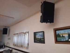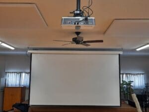 - Extensive A/V equipment (including projector, huge screen, multiple mics, soundboard, and speakers & subwoofers)