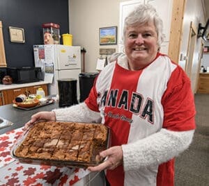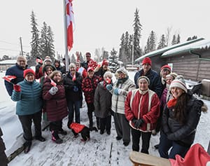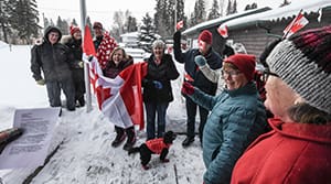 We are here in -20 weather because we are joining thousands of Canadians across the country to lend our voice to shout out that we are CANADA – FREE NORTH & STRONG. Even though we are a tiny community we are mighty in our determination to celebrate our country and to state our support for our community, our province, and our country.
