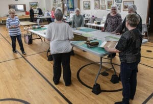 - Work on your own table. Members share information and inspire each other. If you are a beginner quilter, members will generously help you out.