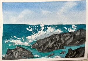 The group decided to follow a tutorial to learn techniques for painting water/waves. We think they look pretty amazing.